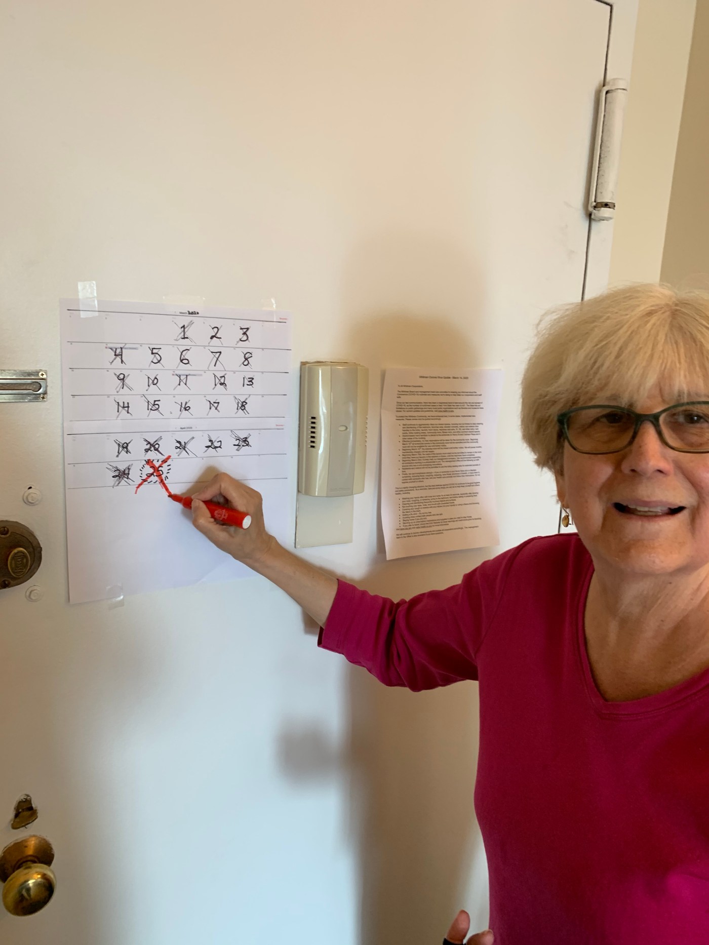 I put on my mask, gloves, outside shoes, and my old cover-up shirt to go down to the lobby to get a package and I tried to remember what day I had ordered the extra batteries for my phone. Hadn’t I gone down to get these same batteries in several previous trips? Didn’t they already arrive? What day was it anyway? As a young woman in the sixties and seventies, I took hallucinogenics, and this was reminiscent of my sense of time then – that feeling of driving down a road and passing the same building forever, the moment that you thought had ended, still present.