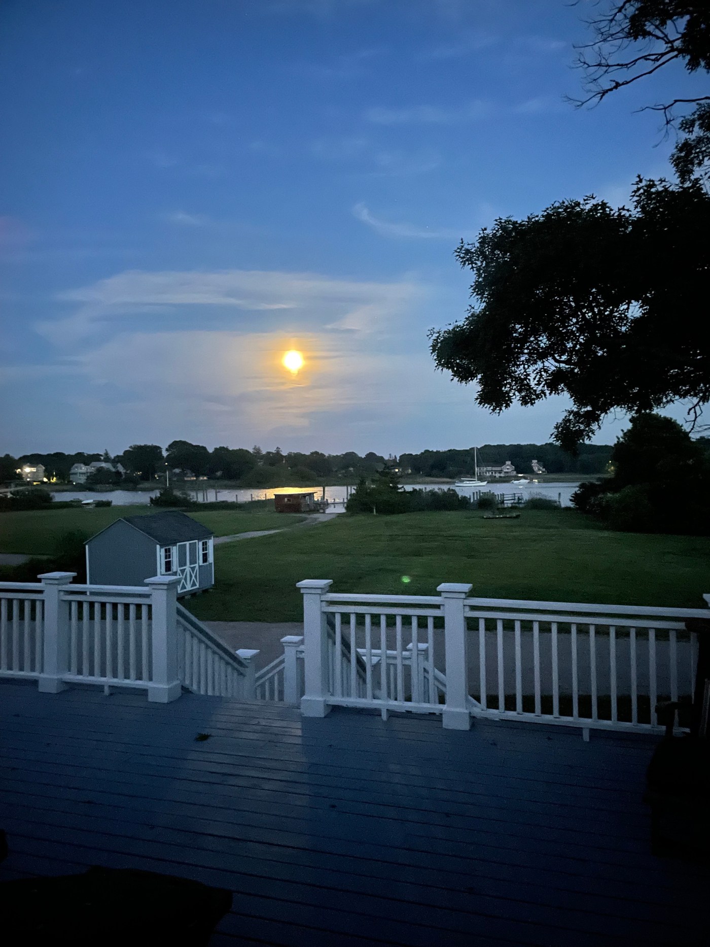 Still smiling, I sat down on the sofa in the quiet, dark vacation house, and looked out at the glow of the full moon over the river. As I sank into the deep, long sofa, though, I felt tears on my face. Since the night of Rosemary’s death, when the full moon over the ocean had kept me company through the long hours by her bedside, vexation and distress has accompanied such views, and I thought my tears must be from this. I studied the photograph of Rosemary that I had placed on the mantle; I could see it in the moonlight that streamed through the patio doors, and she seemed pretty OK. Surely, this full moon did recall that difficult, earlier time – that may never entirely leave me – but these tears seemed to be caused by something else, some other heaviness that lurked, waiting to jump out and attract my attention. I just didn’t know what was triggering my despondency.