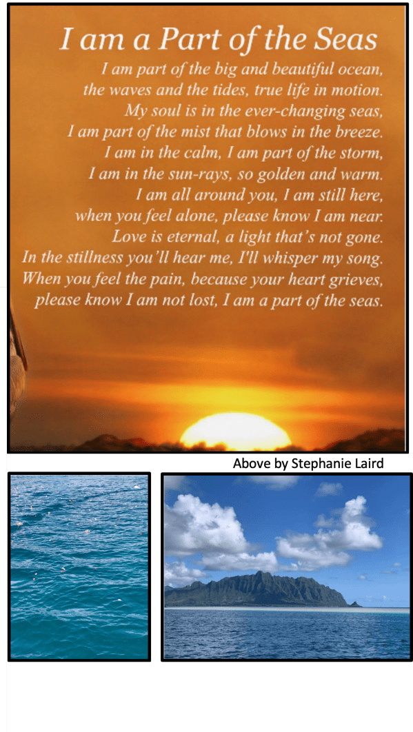 Rosemary's ashes have found their way to the ocean, in Hawaii, where she lived when she was younger, before she found her way to me.
